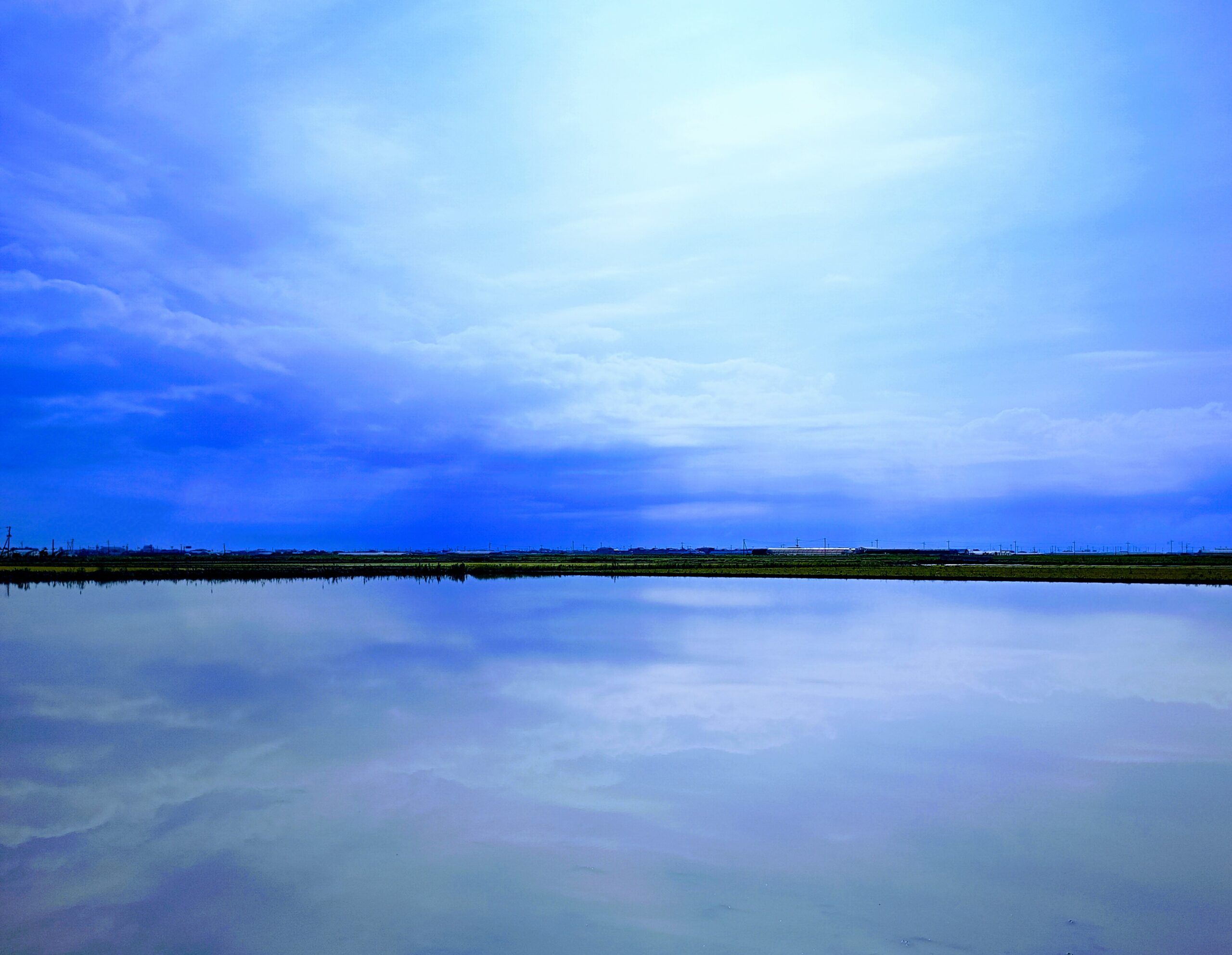 今年1番のお気に入りショット。川副町名物360°の空が、田んぼの水面を通して地上すら支配した様子。
